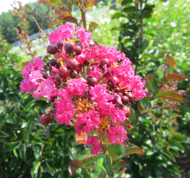 Let's take a little walk around the yard and see what's blooming before it gets too hot. Ha! It was too hot at 7am. At least there is a breeze, like a hot wet slap when you open the door. On the bright side...flowers. Trying to keep my cup half full.